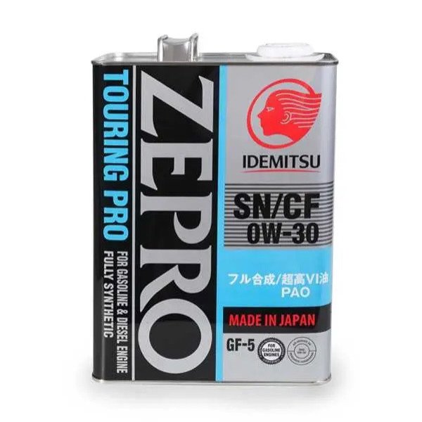 Японське моторне масло IDEMITSU TOURING PRO мае в'язкість по SAE 0W30 і є сучасним синтетичним моторним маслом для японських і європейських автомобілів. Містить в своєму складі синтетичні компоненти поліальфаолефіни (ПАО), що надають йому виключні термостабільні властивості і високу опірність до окислення.