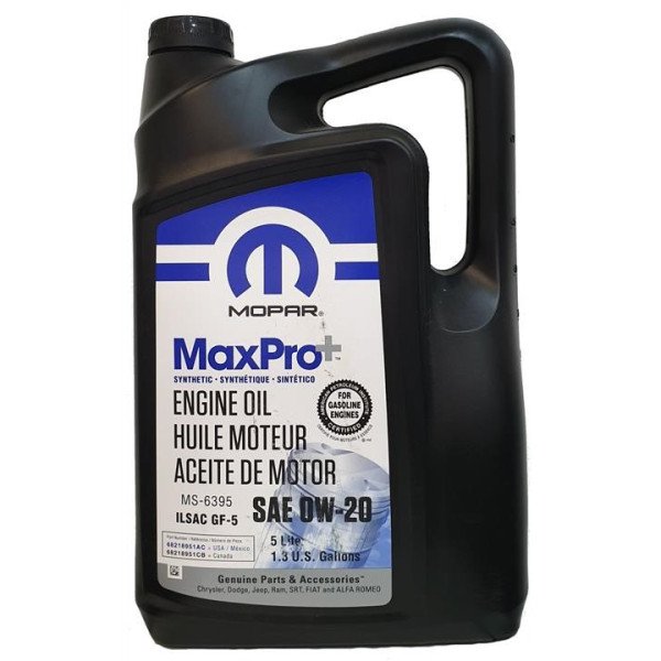 Оригінальне масло для двигунів автомобілів Chrysler, Jeep і Dodge, яким наказано використання масел з допуском MS-6395. Mopar MAXPRO 0W-20 68218951AC 5л є низьков'язким маслом, розробленим на високостабільній синтетичній основі, яка забезпечує підтримання стабільного коефіцієнта тертя при будь-яких стилях водіння і в будь-який час року, надійно захищаючи рухливі вузли від зносу. Продукт підтримує чудову текучість в зимовий період, вільно прокачується через систему змащування і швидко досягає точок змащення, сприяючи швидкому холодного старту з мінімальним пусковим зносом. Висока стійкість до окислення і старіння гарантує підтримку первинних властивостей на дуже високому рівні протягом усього терміну експлуатації.